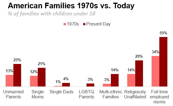 The NYT has this say: Families are more ethnically, racially, religiously and stylistically diverse than half a generation ago —even half a year ago
