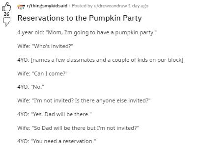 Spend a few minutes in the Things My Kid Said Subreddit if you're in need of a laugh today.